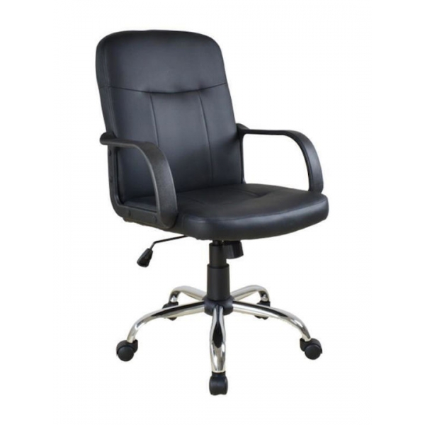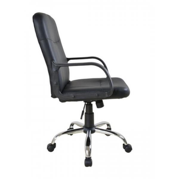 Πολυθρόνα γραφείου διευθυντική ‘ASSOS’ . με εξαιρετικά άνετο κάθισμα και ρυθμιζόμενο ύψος, με κάθισμα σε μαύρο χρώμα PU. Διαθέτει πόδι χρωμίου για απόλυτη αντοχή στο βάρος. Τύπος καρέκλας: Office. Κατασκευή: Πλαστικός σκελετός με μεταλλική chrome 300mm βάση. Υλικό: Συνθετικό δέρμα. Υποβραχιόνιο: Πλαστικό pp. Τύπος ανυψωτήρα: Gas lift 3ης κλάσης για ρύθμιση ύψους. Οι τροχίσκοι είναι επίσης από πολυαιθυλένιο με μια επιφάνεια μαλακής πολυουρεθάνης για αθόρυβη κύλιση και προστασία του πατώματος, ενώ οι πείροι σύνδεσης με την βάση, είναι από ενισχυμένο χάλυβα για εξαιρετική αντοχή στο βάρος έως 110 κιλά.