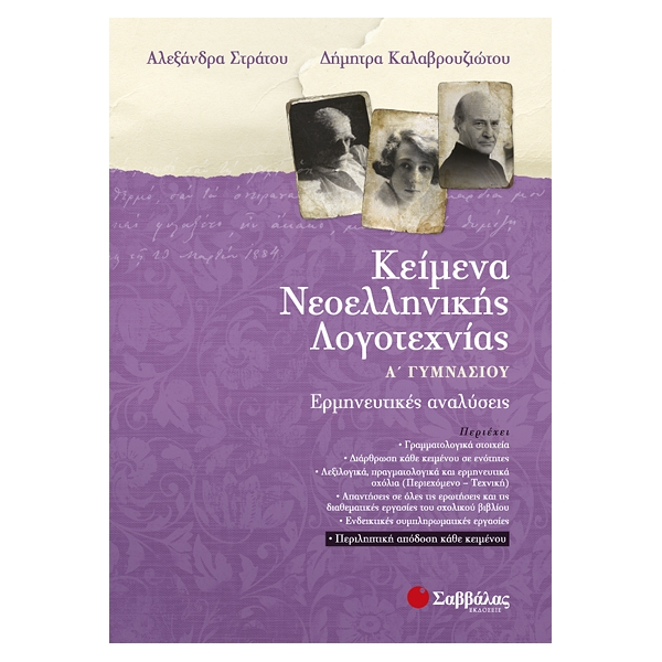 Το βιβλίο αυτό είναι ένα πλήρες βοήθημα για το μάθημα των Κειμένων Νεοελληνικής Λογοτεχνίας της Α’ Γυμνασίου. Σε κάθε κείμενο περιέχονται: