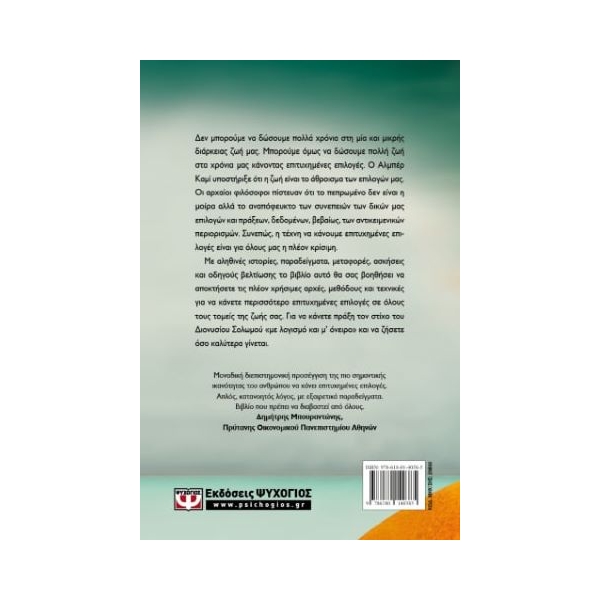 Δεν μπορούμε να δώσουμε πολλά χρόνια στη μία και μικρής διάρκειας ζωή μας. Μπορούμε όμως να δώσουμε πολλή ζωή στα χρόνια μας κάνοντας επιτυχημένες επιλογές. Ο Αλμπέρ Καμί υποστήριξε ότι η ζωή είναι το άθροισμα των επιλογών μας. Οι αρχαίοι φιλόσοφοι πίστευαν ότι το πεπρωμένο δεν είναι η μοίρα αλλά το αναπόφευκτο των συνεπειών των δικών μας επιλογών και πράξεων, δεδομένων, βεβαίως, των αντικειμενικών περιορισμών. Συνεπώς, η τέχνη να κάνουμε επιτυχημένες επιλογές είναι για όλους μας η πλέον κρίσιμη.