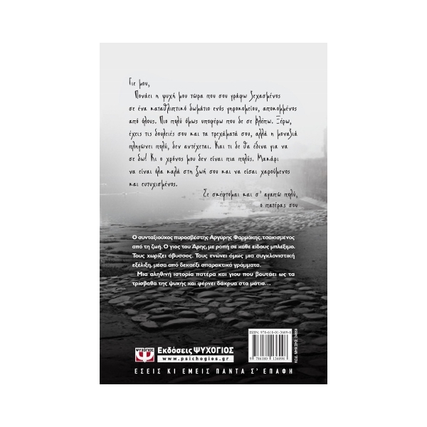 Ο συνταξιούχος πυροσβέστης Αργύρης Φαρμάκης, τσακισμένος από τη ζωή. Ο γιος του Άρης, με ροπή σε κάθε είδους μπλέξιμο. Τους χωρίζει άβυσσος. Τους ενώνει όμως μια συγκλονιστική εξέλιξη, μέσα από δεκαέξι σπαρακτικά γράμματα.