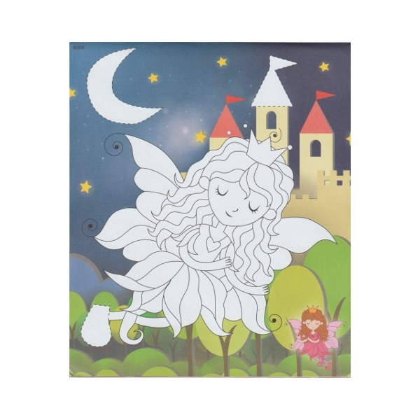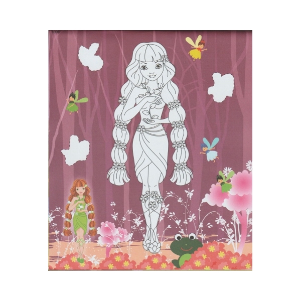 Στην σελίδα με τα αυτοκόλλητα, βρες τα κομμάτια που λείπουν από την σελίδα για χρωματισμό, κόψε και κόλλησέ τα στους χώρους που σημειώνονται με τελίτσες και κάθε σελίδα θα γίνει μια πανέμορφη χρωματιστή εικόνα με γκλίτερ στοιχεία.