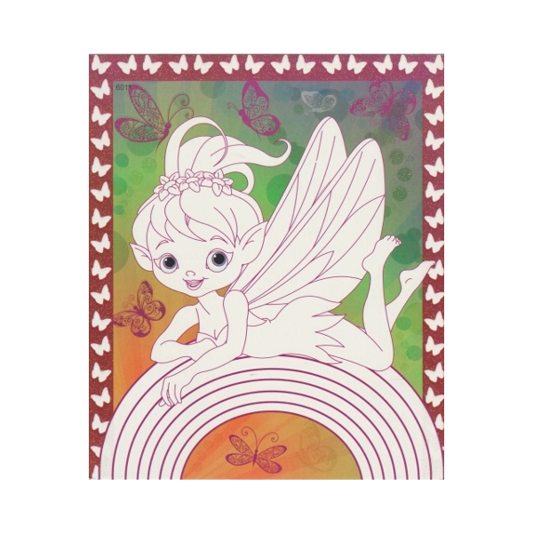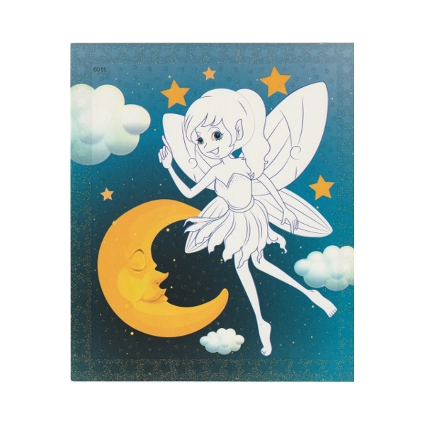 Κάθε σελίδα περιέχει το περίγραμμα μιας ζωγραφιάς πάνω σε ένα καλλιτεχνικά χρωματισμένο φόντο εκτυπωμένο σε παχύ χαρτί και διακοσμημένο με γκλίτερ.