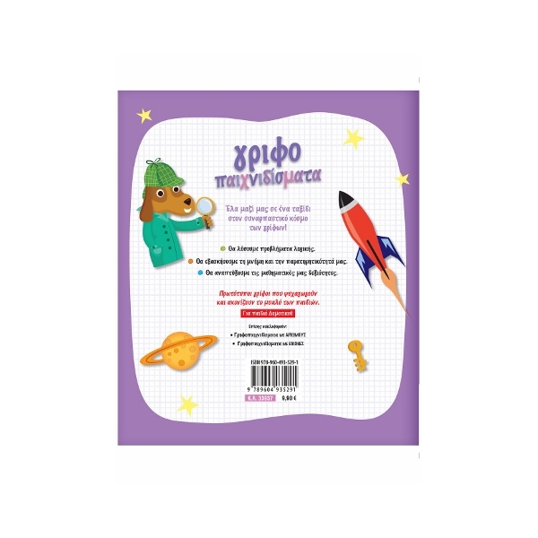 Έλα μαζί μας σε ένα ταξίδι στον συναρπαστικό κόσμο των γρίφων! Θα λύσουμε προβλήματα λογικής, θα εξασκήσουμε τη μνήμη και την παρατηρητικότητά μας, θα αναπτύξουμε τις μαθηματικές μας δεξιότητες και θα ακονίσουμε το μυαλό μας. Επίσης κυκλοφορούν: Γριφοπαιχνιδίσματα με εικόνες Γριφοπαιχνιδίσματα με αριθμούς
