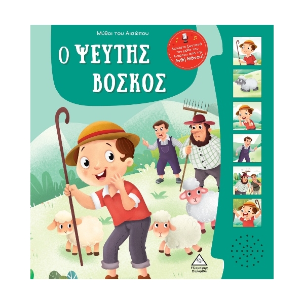 Στο υπέροχο αυτό βιβλίο θα διαβάσετε και θα ακούσετε την ιστορία του νεαρού βοσκού που κορόιδευε τους συγχωριανούς του, ζητώντας τους να τον βοηθήσουν χωρίς α υπάρχει πραγματική ανάγκη. Τι έγινε, όμως, όταν χρειάστηκε στ' αλήθεια τη βοήθειά τους;