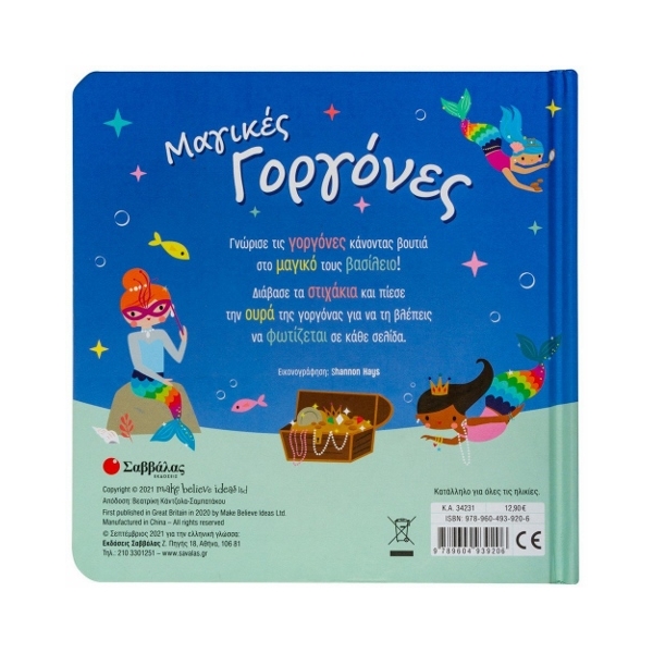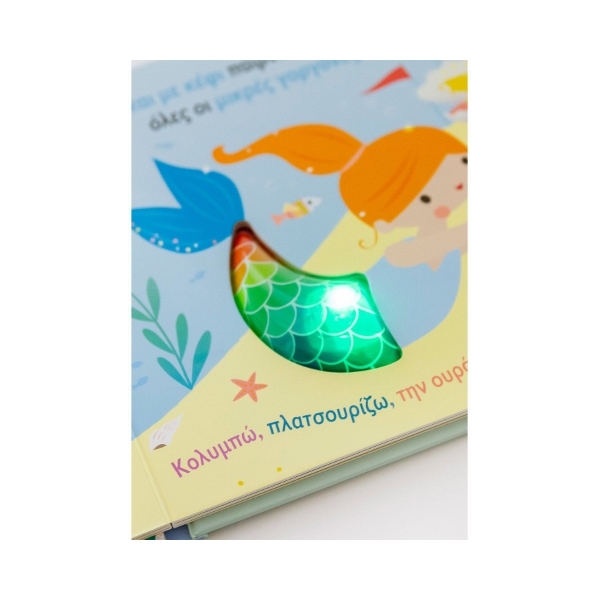 Γνώρισε τις γοργόνες κάνοντας βουτιά στο μαγικό τους βασίλειο! Διάβασε τα στιχάκια και πίεσε την ουρά της γοργόνας για να τη βλέπεις να φωτίζεται σε κάθε σελίδα.
