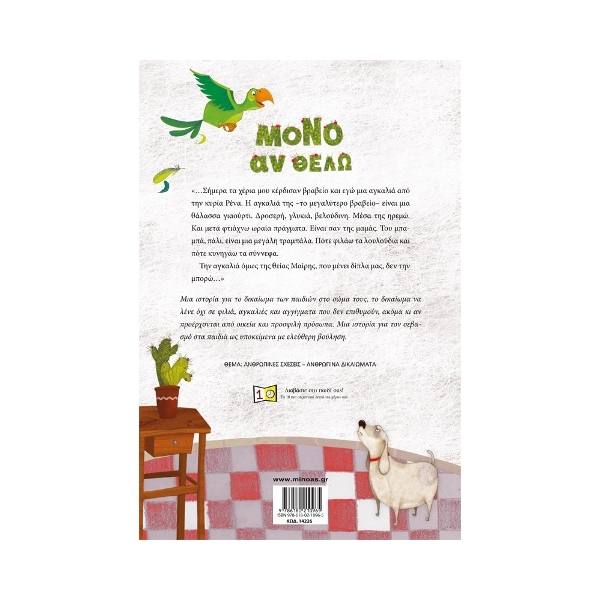 Μια ιστορία για το δικαίωμα των παιδιών στο σώμα τους, το δικαίωμα να λένε όχι σε φιλιά, αγκαλιές και αγγίγματα που δεν επιθυμούν, ακόμα κι αν προέρχονται από οικεία και προσφιλή πρόσωπα. Μια ιστορία για τον σεβασμό στα παιδιά ως υποκείμενα με ελεύθερη βούληση.