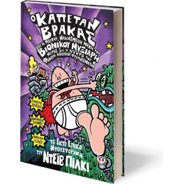 Ο Τζορτζ και ο Χάρολντ έχουν μπλέξει για τα καλά. Η τελευταία τους φάρσα έκανε έξω φρενών τον Μέλβιν Σνίντλι, το μεγαλύτερο φυτό του σχολείου, που τώρα ανυπομονεί να πάρει εκδίκηση. Μόνο που, στην προσπάθειά του να μεταμορφωθεί σε βιονικό σούπερ αγόρι, τα κάνει μούσκεμα… Και κάπως έτσι γεννιέται ο Βιονικός Μυξιάρης! Άραγε θα καταφέρει ο Καπετάν Βράκας να νικήσει το αηδιαστικό μυξοτέρας ή είμαστε όλοι καταδικασμένοι να πνιγούμε μέσα σε έναν σιχαμερό βλεννώδη καταρράχτη; Όπως και να ’χει, θα χρειαστείτε χαρτομάντιλα!