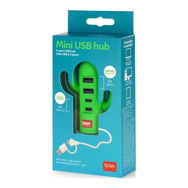 Η Legami 4-Port Mini USB Hub - Cactus φέρνει χρώμα στην τεχνολογία σας και σας επιτρέπει να συνδέσετε έως και 4 συσκευές ταυτόχρονα. Με μήκος καλωδίου 50 εκ., είναι ένα απαραίτητο αξεσουάρ για όσους εργάζονται με πολλαπλές συσκευές ταυτόχρονα.