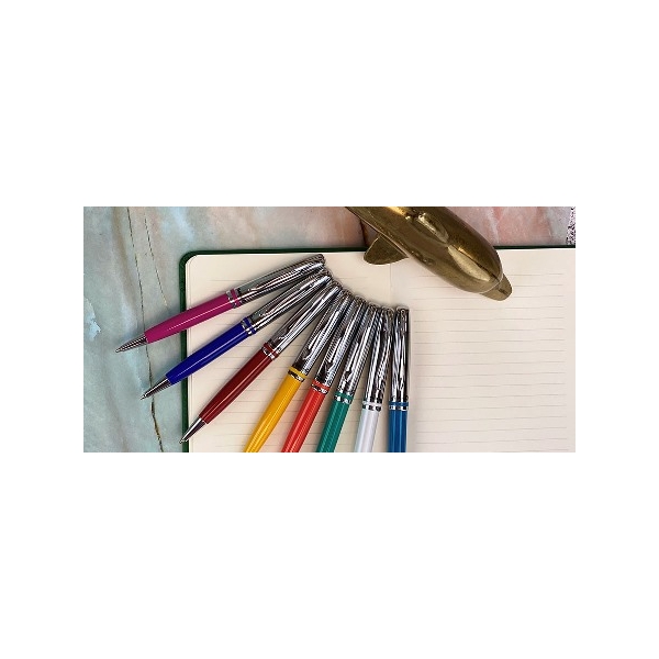 Στυλό Pelikan τύπου ballpoint, με μπλε μελάνι. Τα ballpoint στεγνώνουν γρήγορα και δεν αφήνουν μουτζούρες. Το μελάνι διαρκεί περισσότερο σε σχέση με τους άλλους τύπους, αλλά η γραφή είναι λιγότερο ομαλή και μπορεί να αφήσει κενά. Κατάλληλοι για όλες τις ποιότητες χαρτιού και για καθημερινή χρήση.