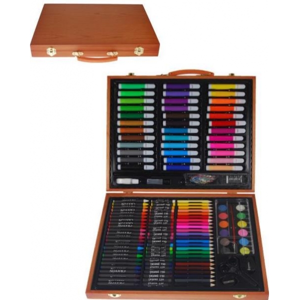Σετ ζωγραφικής 150 τεμαχίων σε ξύλινο κουτί, σε απίστευτη τιμή.
