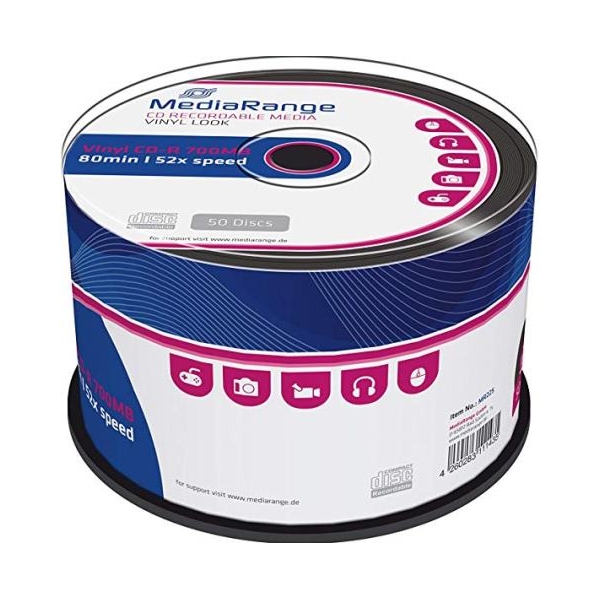 ![]() MediaRange Vinyl CD-R 80' 700MB 52x Black dye Pack x 50 (MR225)
