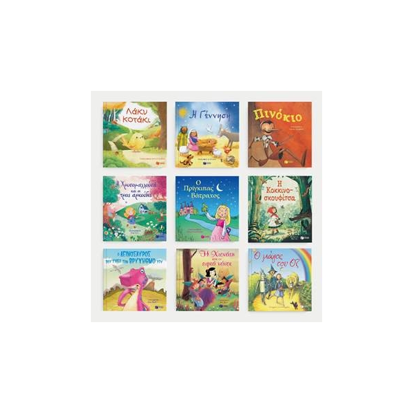 Περιέχει 24 βιβλιαράκια καθένα με ένα μοναδικό παραμύθι. Πίσω από καθένα από τα 24 παράθυρα βρίσκεται ένα βιβλιαράκι.