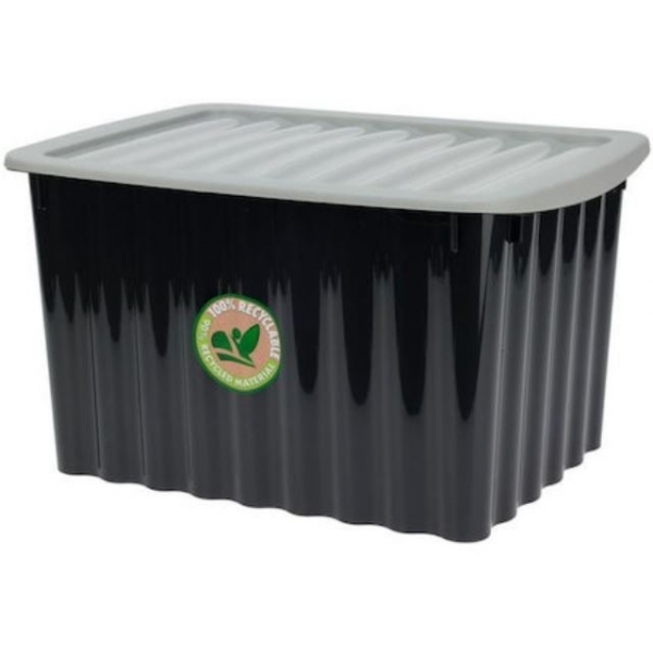 Κουτί αποθήκευσης με καπάκι. Είναι πολύ πρακτικό για αποθήκευση διάφορων αντικειμένων και την τακτοποίηση του χώρου σας. Είναι κατασκευασμένο από 90% ανακυκλωμένα υλικά και είναι 100% ανακυκλώσιμο. Χρώμα: μαύρο. Διαστάσεις: Y23x40x30εκ.