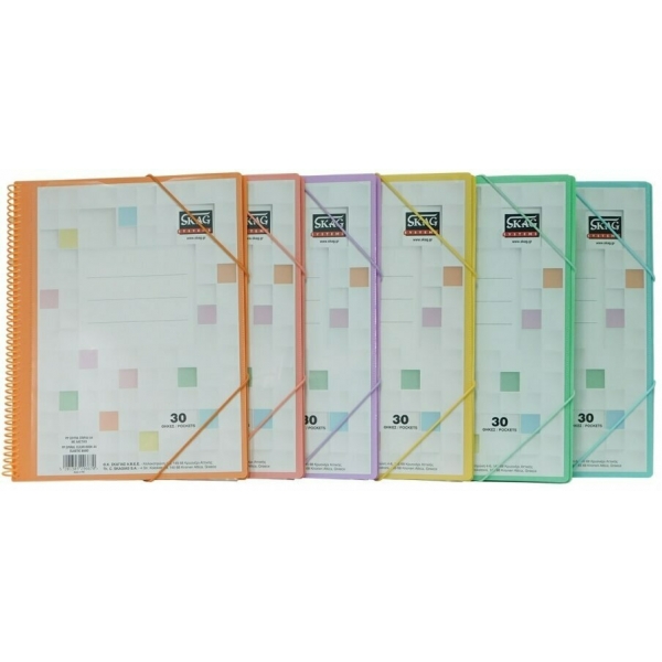 Σουπλ κατασκευασμένα από ανακυκλώσιμο P.P., σε 6 διαφορετικά παστέλ χρώματα (Γαλάζιο, Πράσινο, Κίτρινο, Πορτοκαλί, Φούξια & Μωβ) και διάσταση Α4, από τη SKAG. Διαθέτουν 30 θήκες και 1 εσωτερική, διάφανη θήκη με velcro, σπιράλ και λάστιχο στο ίδιο χρώμα, για την εύκολη και ασφαλή αρχειοθέτηση και οργάνωση των εγγράφων σας. Με εξωτερικό τυπωμένο φύλλο για γρήγορη και εύκολη εύρεση των περιεχομένων. Επιλέξτε τα υψηλής ποιότητας σουπλ της SKAG και αναβαθμίστε την οργάνωση του γραφείου σας σήμερα.