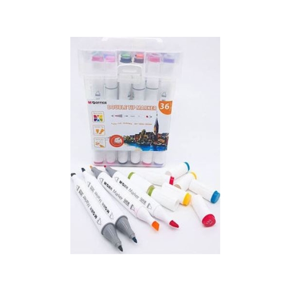Το σετ περιέχει 36 μαρκαδόρους σε διάφορα χρώματα. Διαθέτουν δύο μύτες με διαφορετικό πάχος για ευελιξία στην ζωγραφική.