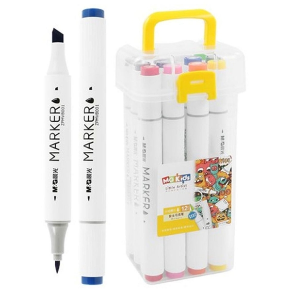 Το σετ μαρκαδόρων ζωγραφικής της M&G περιέχει 12 μαρκαδόρους σε διάφορα χρώματα. Διαθέτουν δύο μύτες με διαφορετικό πάχος για ευελιξία στην ζωγραφική.