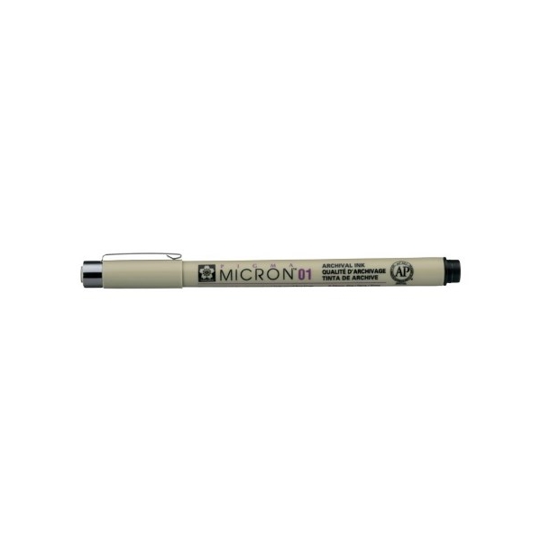 Το pigma Micron 01 Black με μύτη 0,25 mm,προσφέρει σταθερή γραμμή, καθώς και υπέροχη μεταφορά χρώματος. Το μοναδικό μελάνι sakura pigma ™ είναι μόνιμο, αδιάβροχο, ανθεκτικό στο ξεθώριασμα, στεγνώνει γρήγορα και έχει ουδέτερο pH. Ιδανικό για: Καθημερινή γραφή, Καλλιγραφία, Bullet journal, Sketching, Comic drawing, Scrapbooking. Κατάλληλο για γραφή σε πορώδη επιφάνεια, για χρήση σε ριζόχαρτο και διαφάνεια. Τα Pigma micron διατίθενται σε διάφορα μεγέθη.