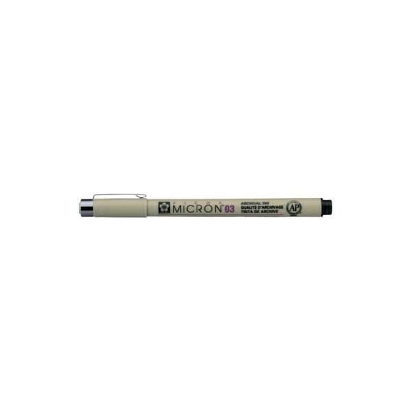 Το pigma Micron 03 Black με μύτη 0,35 mm,προσφέρει σταθερή γραμμή, καθώς και υπέροχη μεταφορά χρώματος. Το μοναδικό μελάνι sakura pigma ™ είναι μόνιμο, αδιάβροχο, ανθεκτικό στο ξεθώριασμα, στεγνώνει γρήγορα και έχει ουδέτερο pH. Ιδανικό για: Καθημερινή γραφή, Καλλιγραφία, Bullet journal, Sketching, Comic drawing, Scrapbooking. Κατάλληλο για γραφή σε πορώδη επιφάνεια, για χρήση σε ριζόχαρτο και διαφάνεια. Τα Pigma micron διατίθενται σε διάφορα μεγέθη.