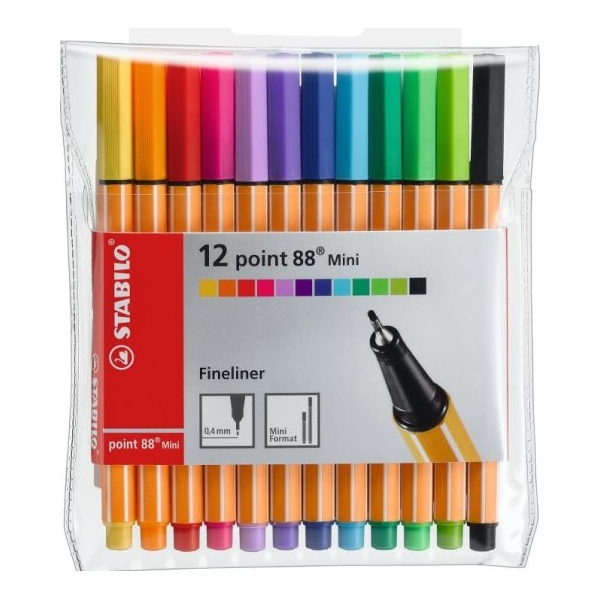 Ένα υπέροχο σετ 12 μαρκαδόρων Stabilo Point 88 Mini. Οι μαρκαδόροι αυτοί αποτελούν μια μίνι έκδοση της σειράς Point 88 με πιο συμπαγή χαρακτηριστικά αλλά τα ίδια λαμπερά χρώματα!
