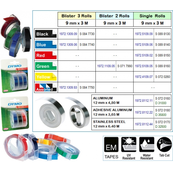 ΤΑΙΝΙΕΣ ΑΠΟ ΠΟΛΥ ΑΝΘΕΚΤΙΚΟ ΑΛΟΥΜΙΝΙΟ ΓΙΑ ΕΤΙΚΕΤΟΓΡΑΦΟΥΣ DYMO EMBOSSER. ΔΙΑΣΤΑΣΕΙΣ 12mm X 3,65 μετρα.