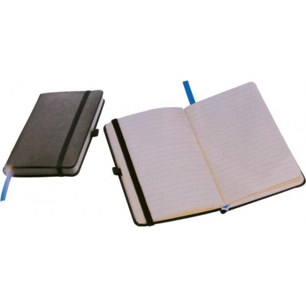ραφτό μαύρο σε μέγεθος Α5 με φύλλα ριγέ.