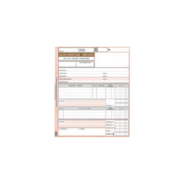 ![]() ΔΕΛΤΙΟ ΑΠΟΣΤΟΛΗΣ-ΤΙΜΟΛΟΓΙΟ ΠΑΡΟΧΗΣ ΥΠΗΡΕΣΙΩΝ 3πο ΔΙΑΣΤΑΣΕΙΣ 19Χ20 / 3πο/ ΑΥΤΟΓΡΑΦΙΚΟ / 50 ΦΥΛΛΑ |