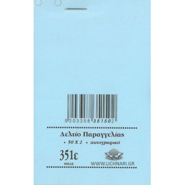 ΔΕΛΤΙΟ ΠΑΡΑΓΓΕΛΙΑΣ ΜΠΑΡ 351Ε 2πο 12Χ8εκ.