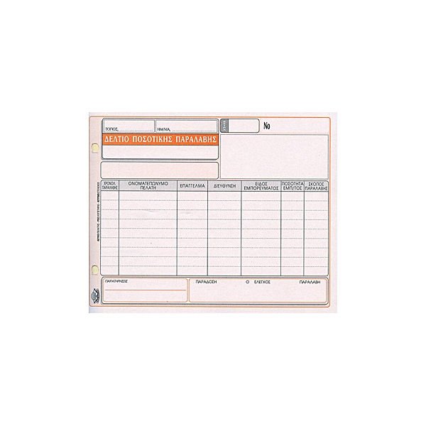 ΔΕΛΤΙΟ ΠΟΣΟΤΙΚΗΣ ΠΑΡΑΛΑΒΗΣ 3πο / 315Α