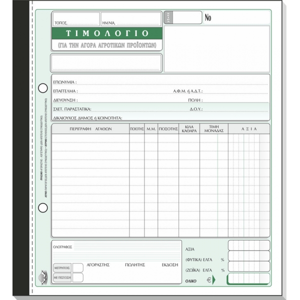 ![]() ΤΙΜΟΛΟΓΙΟ ΑΓΟΡΑΣ ΑΓΡΟΤIKVN ΠΡΟΙΟΝΤΩΝ ΚΩΔ.289 ΑΥΤΟΓΡΑΦΙΚΟ / 3πο / ΔΙΑΣΤΑΣΕΩΝ 19Χ20 / 50 ΦΥΛΛΩΝ