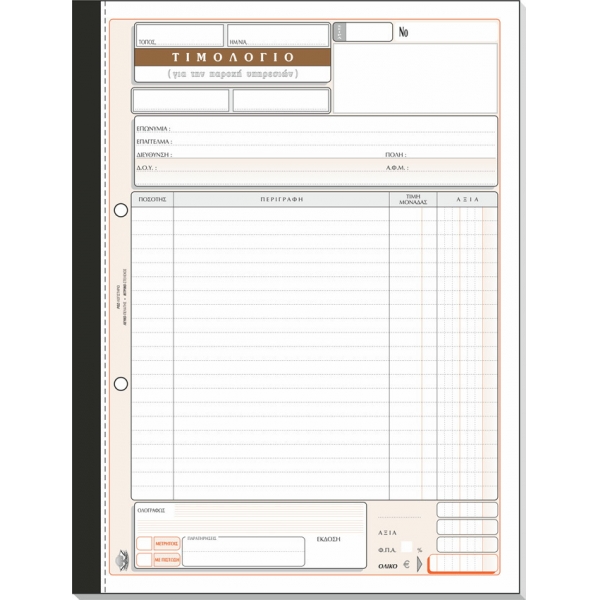 ![]() ΤΙΜΟΛΟΓΙΟ ΠΑΡΟΧΗΣ ΥΠΗΡΕΣΙΩΝ 3πο ΔΙΑΣΤΑΣΕΙΣ 21Χ29 / 3πο / ΑΥΤΟΓΡΑΦΙΚΟ / 50 ΦΥΛΛΑ ΜΕ ΕΝΑ Φ.Π.Α & ΑΝΑΛΥΣΗ Φ.Π.Α ΚΩΔΙΚΟΣ 283 |