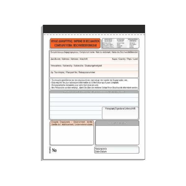 Φύλλο Διαμαρτυρίας Εστιατορίου 314 3/ΠΟ