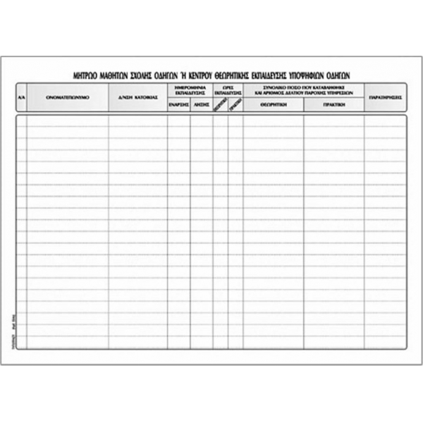 Βιβλίο Μητρώου Μαθητών Σχολής Οδηγών 554Α (50φ.)