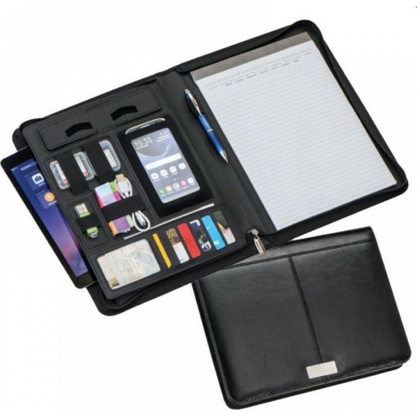Portfolio επαγγελματικό από γνήσιο δέρμα, με φερμουάρ, σημειωματάριο Α4 30 σελίδων και πολλές θήκες. Διαστάσεις: Υ35x26,5x5εκ.
