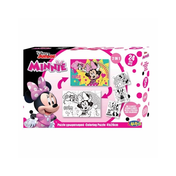 Το Παζλ Χρωματισμού Disney Minnie Mouse 2 Όψεων 24 Τμχ. και διαστάσεων 41x28 εκ. αποτελεί ένα ιδανικό εκπαιδευτικό παιχνίδι για τον ελεύθερο χρόνο των παιδιών στο σπίτι και στις διακοπές.Τα παιδιά κατασκευάζουν Παζλ αγαπημένων ηρώων, τα ζωγραφίζουν και αναπτύσσουν με τον πιο εύκολο και διασκεδαστικό τρόπο κινητικές δεξιότητες, την αντίληψη και την παρατηρητικότητα. • Brand: Luna Toys• Κατασκευαστής: Διακάκης Εισαγωγική ΑΕ• Διαστάσεις: 41x28 εκ.• Θέμα: Minnie Mouse• Κομμάτια: 24 Τμχ.• Περιέχει: Puzzle Χρωματισμού 2 Όψεων, 3 Αφίσες Χρωματισμού• Υλικό Κατασκευής: Ανθεκτικό Χαρτόνι υψηλής ποιότητας• Κατάλληλο για παιδιά ηλικίας 3+ Η νέα σειρά εκπαιδευτικών Παζλ Χρωματισμού Luna Toys μαζί με αγαπημένους παιδικούς ήρωες της Disney υπόσχονται ατέλειωτες ώρες διασκέδασης και δημιουργικότητας που θα ενθουσιάσουν κάθε παιδί!