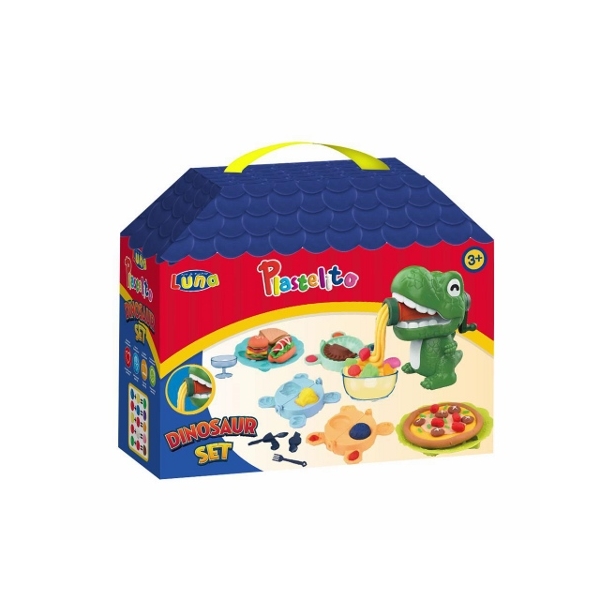 Ήρθε το Πλαστοζυμαράκι Δεινόσαυρος Luna Plastelito με εργαλεία που θα ενθουσιάσει όλα τα παιδιά! Τοποθετούμε τις μη τοξικές και μαλακές πλαστελίνες στον δεινόσαυρο και δημιουργούμε στα καλούπια υπέροχα φαγητά. Ένα ξεχωριστό δημιουργικό παιχνίδι που βοηθά στην ανάπτυξη της λεπτής κινητικότητας και τη φαντασία.