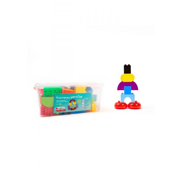 Χρησιμοποίησε τη φαντασία σου και τα πολύχρωμα τουβλάκια και συναρμολόγησε ανθρωπάκια και άλλες κατασκευές! Τα παιδιά περνούν ευχάριστα τον ελεύθερο χρόνο τους, ενώ παράλληλα αναπτύσσουν τις δεξιότητές τους. Το διάφανο κουτί ανοίγει κλείνει χωρίς δυσκολία, είναι βολικό στην αποθήκευση και διαθέτει χερούλι για εύκολη μεταφορά. Δεξιότητες (με εικονίδια): Λεπτή κινητικότητα, συντονισμός χεριού-ματιού, αφή Καλλιτεχνική έκφραση Δημιουργικότητα, φαντασία, περιέργεια, μουσική, τέχνη Αντίληψη χώρου