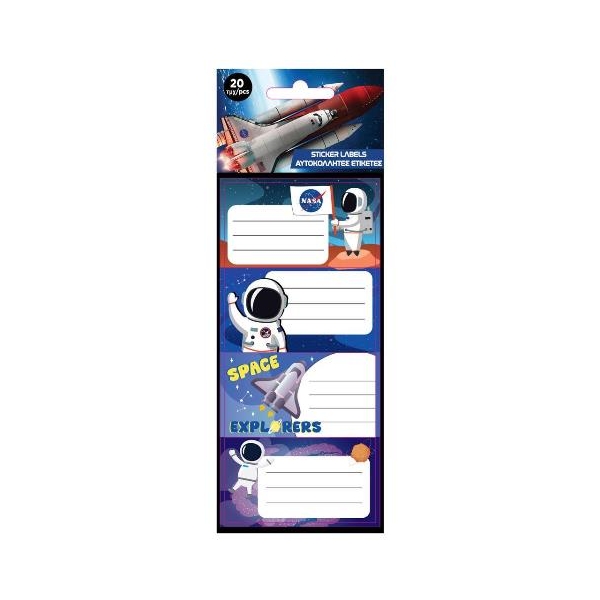 Οι Αυτοκόλλητες Ετικέτες NASA 20 Τμχ. διατίθενται σε 5 υπέροχα σχέδια και είναι ιδανικές για να διακοσμούν σχολικά είδη, όπως σχολική τσάντα πλάτης, τρόλεϊ, κασετίνα, βιβλία, τετράδια, και φακέλους!