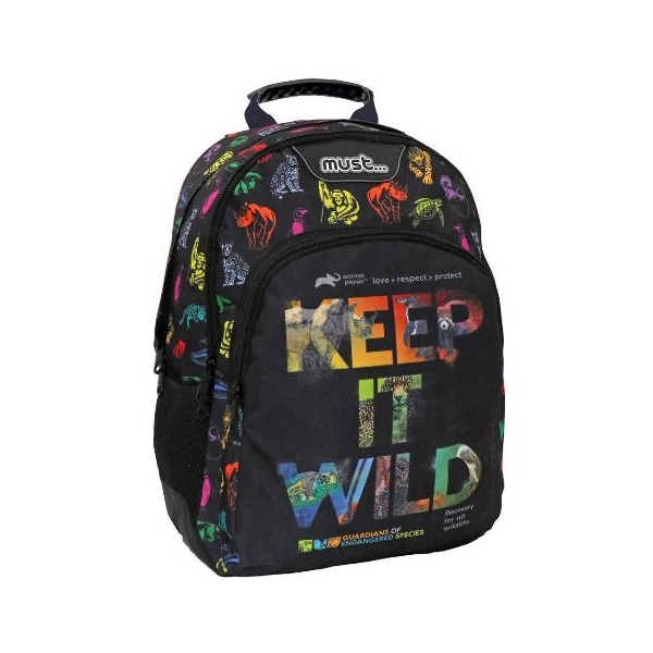 Σχολική Τσάντα Πλάτης Δημοτικού Animal Planet Keep It Wild Must με 3 θήκες ιδανική για την καθημερινή ασφαλή, άνετη και εύκολη μεταφορά όλων των απαραίτητων σχολικών ειδών.