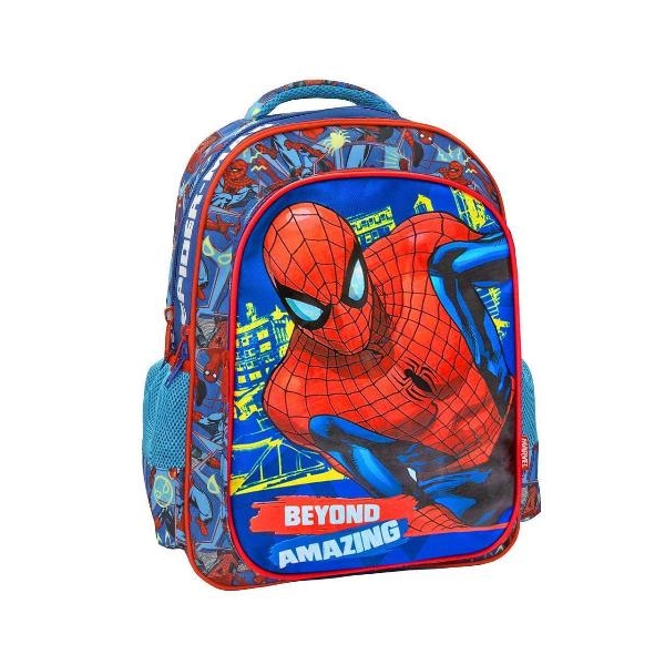 Σχολική τσάντα η οποία μπορεί να φορεθεί στην πλάτη, κατάλληλη για παιδιά δημοτικού της εταιρίας Must με θέμα Spiderman σε μπλε χρώμα.