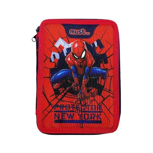 • Κασετίνα από ύφασμα της Must δύο θέσεων, με φερμουάρ και σχέδιο Spiderman. Έρχεται γεμάτη με γραφική ύλη.
