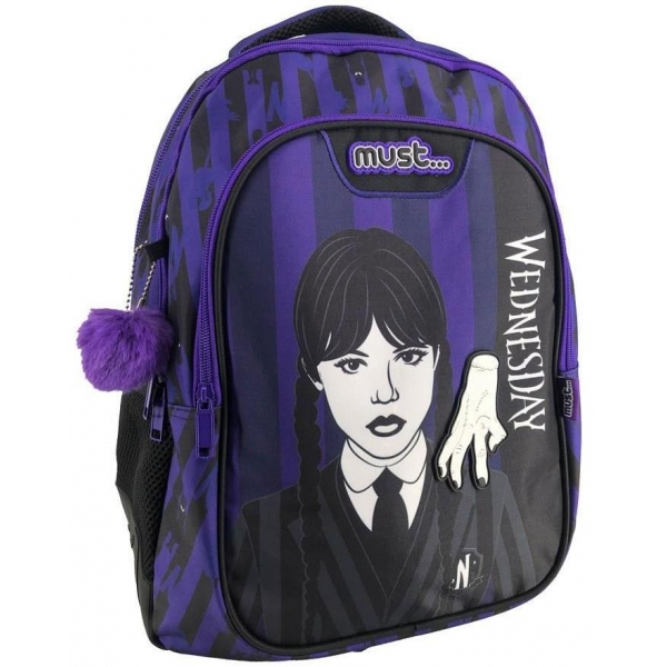 Η Σχολική Τσάντα Πλάτης Δημοτικού Wednesday Hand Must με 3 θήκες ξεχωρίζει για το εντυπωσιακό σχέδιο της Addams Wednesday και τον εργονομικό σχεδιασμό, προσφέροντας ασφαλή, άνετη και εύκολη μεταφορά όλων των απαραίτητων σχολικών ειδών στο σχολείο.