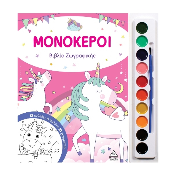 Μονόκεροι - Βιβλίο ζωγραφικής με παλέτα 10 χρωμάτων (ΤZIAMΠΙΡΗΣ)