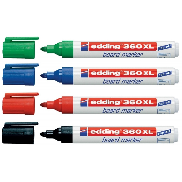 ![]() Bullet tip low odour pigment ink with width of stroke 1,5-3mm. Can remain uncapped for 14 days without drying. Ideal for use on smooth surfaces and whiteboards. Key Features
